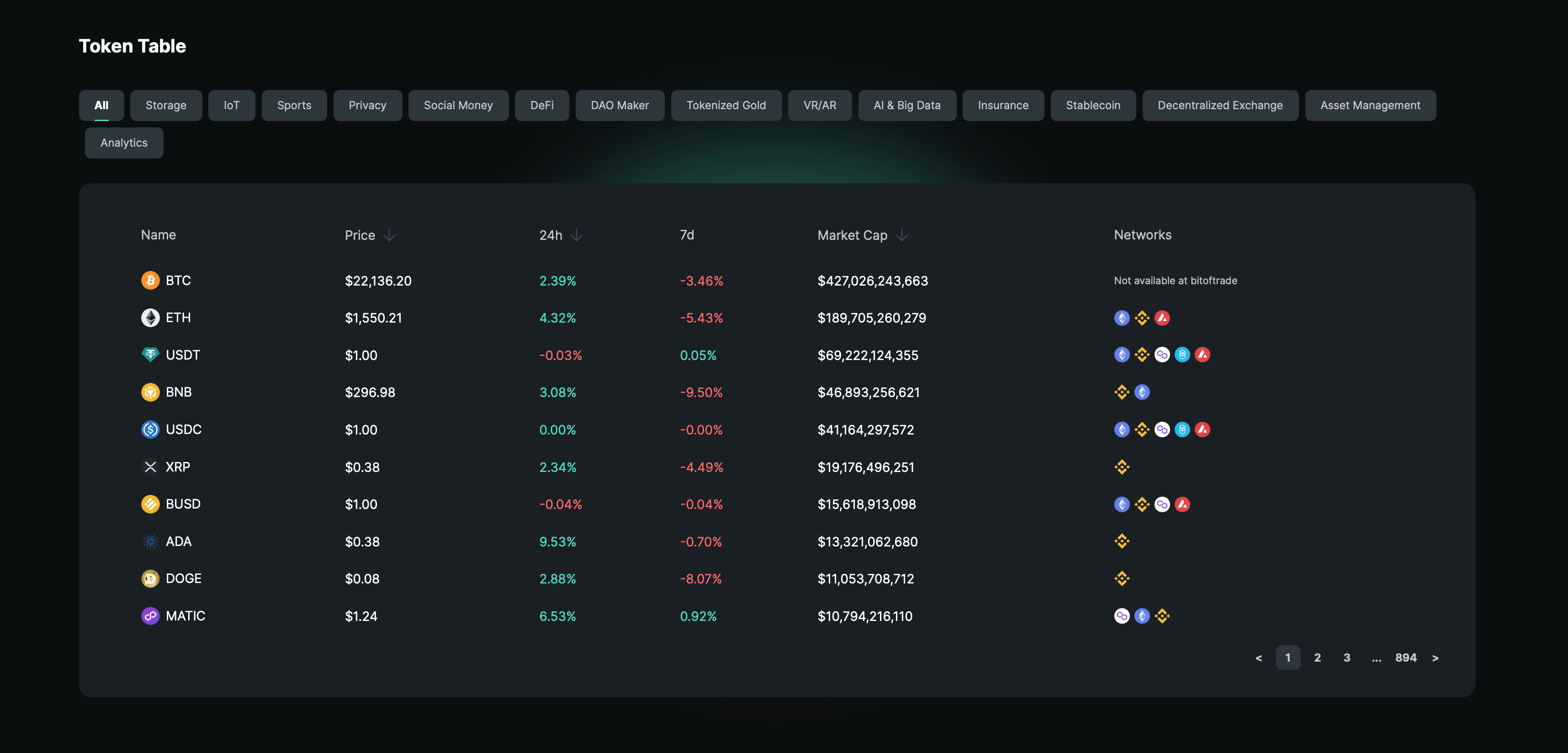 3. The Token Table automatically ranks indicators about crypto projects of various purposes and specifics: